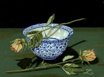 2012Blauw porseleinen schaaltje met twee rozen