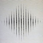 2016De voorstelling brengt verwarring doordat men zich op twee patronen kan focussen. Zowel horizontaal als verticaal is een patroon te herkennen.