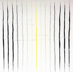 2017Tussen opgebrachte lijnen van katoen ontstaat relëf op het doek. Daartussen is een spiraal-achtige vorm geschilderd.